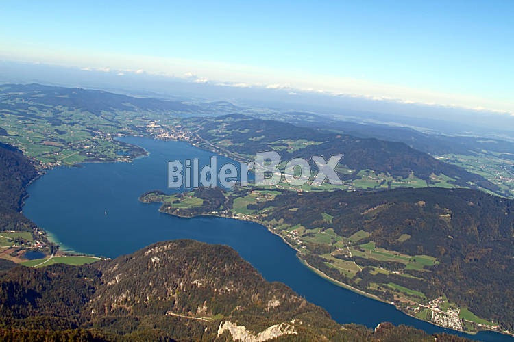 Beschreibung Österreich, Blick vom Schafberg, Mondsee. Schöne Landschaft mit See