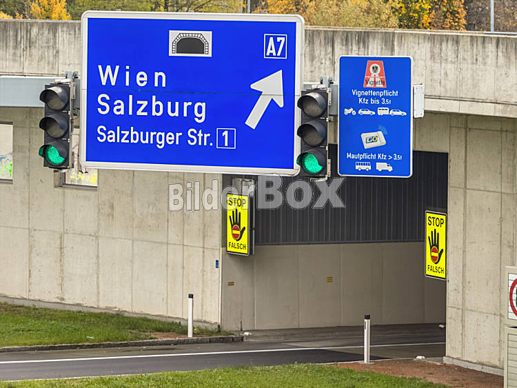 Beschreibung Österreich, Linz, Stadtautobahn. Tunnel für Lärmberuhigung am Bindermichel auf Autobahn A7.