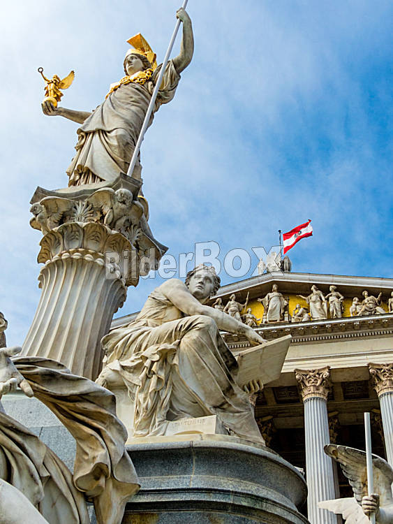 Beschreibung Das Parlament in Wien, Österreich. Mit der Statue der " Pallas Athene" der griechischen Göttin für Weisheit.