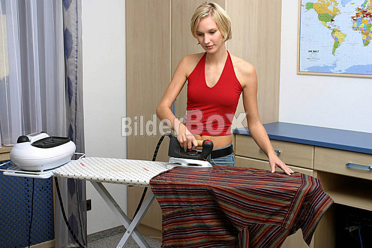 Beschreibung Frau buegelt [ (c) www.BilderBox.com, Erwin Wodicka, A-4063 Breitbrunn, Tel. +43 676 5103 678. Verwendung nur gegen HONORAR, BELEG, URHEBERVERMERK und den AGBŽs auf www.bilderbox.com ] in an am um...