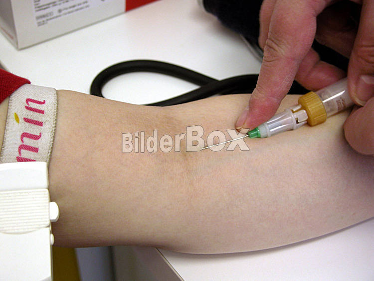 Beschreibung Blutabnahme beim Arzt [ (c) www.BilderBox.com,Erwin Wodicka,Siedlerzeile 3,A4062 Thening,Tel.+43 676 5103 678. Verwendung nur gegen HONORAR, BELEG, URHEBERVERMERK und den AGBs auf bilderbox.com ]...
