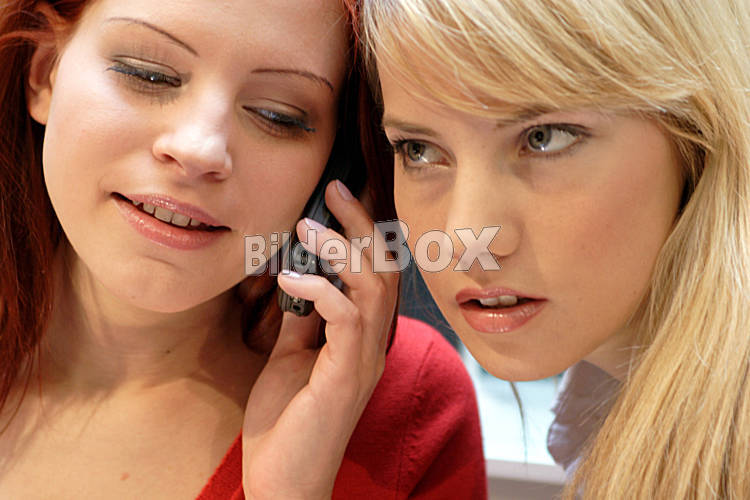 Beschreibung Zwei Frauen telefonieren mit einem Handy [ (c) www.BilderBox.com,Erwin Wodicka,Siedlerzeile 3,A4062 Thening,Tel.+43 676 5103 678. Verwendung nur gegen HONORAR, BELEG, URHEBERVERMERK und den AGBs...