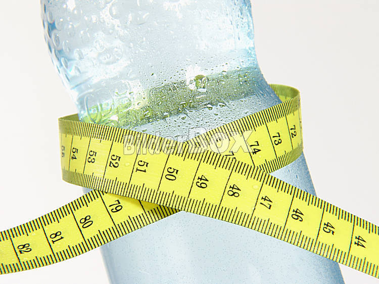 Beschreibung Mineralwasserflasche mit Massband / Mineral water bottle with tape measure [ (c) www.BilderBox.com,Erwin Wodicka,Siedlerzeile 3,A4062 Thening,Tel.+43 676 5103 678. Verwendung nur gegen HONORAR,...