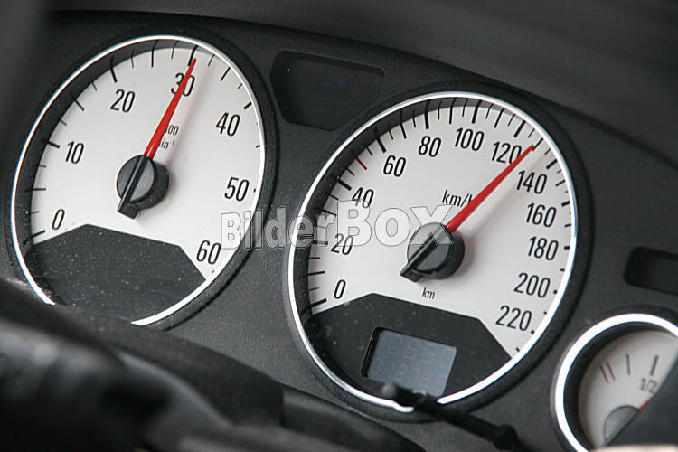 Beschreibung Tachometer in einem Auto bei Tempo 130 / Speedometer in a car with speed 130 [ (c) www.BilderBox.com,Erwin Wodicka,Siedlerzeile 3,A4062 Thening,Tel.+43 676 5103 678. Verwendung nur gegen HONORAR,...