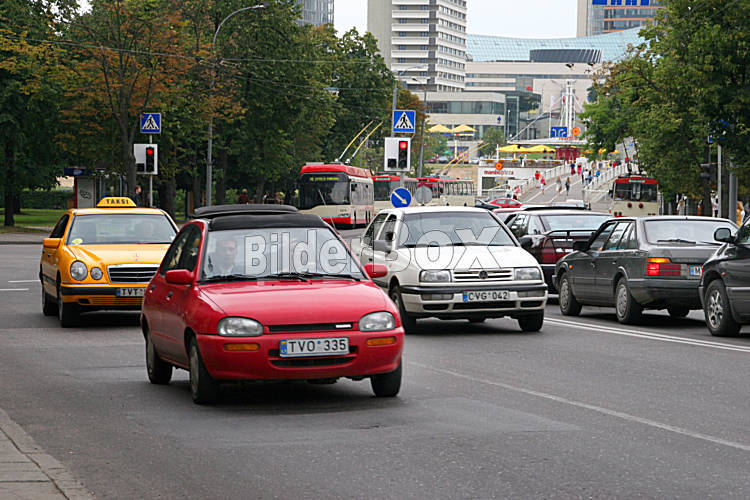 Beschreibung Litauen - Vilnius - Strassenscene / Lithuania - Vilnius - Traffic [ (c) www.BilderBox.com, Erwin Wodicka, Siedlerzeile 3, A-4062 Thening, Tel. + 43 676 5103678.Verwendung nur gegen HONORAR,...