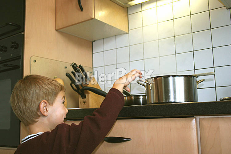 Beschreibung Kind mit Kochtopf in der Kueche [ (c) www.BilderBox.com, Erwin Wodicka, Siedlerzeile 3, A-4062 Thening, Tel. + 43 676 5103678.Verwendung nur gegen HONORAR, BELEG,URHEBERVERMERK und den AGBs auf...