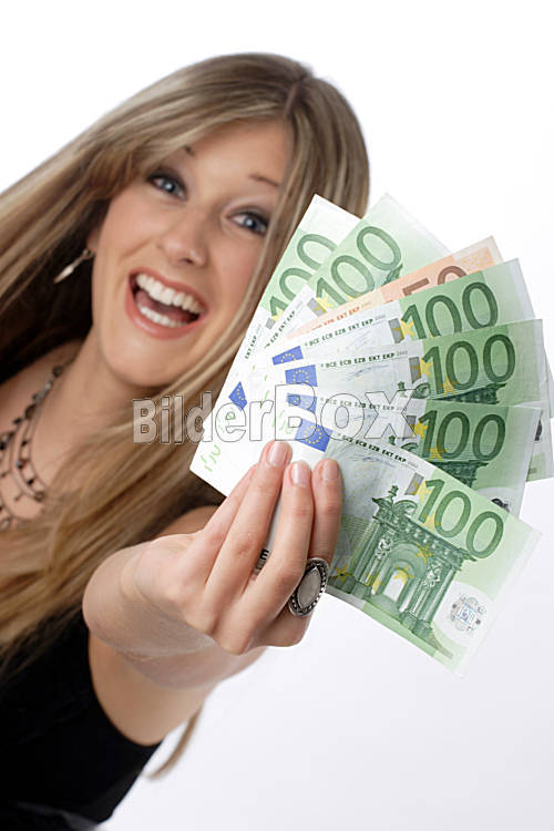 Beschreibung Frau hat Geldscheine in der Hand [ (c) www.BilderBox.com, Erwin Wodicka, Siedlerzeile 3, A-4062 Thening, Tel. + 43 676 5103678.Verwendung nur gegen HONORAR, BELEG,URHEBERVERMERK und den AGBs auf...