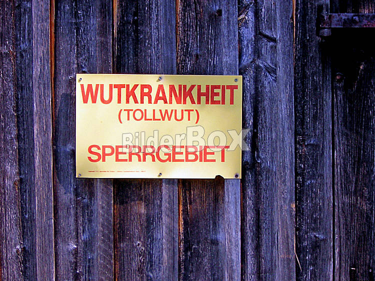 Beschreibung Warnschild Tollwut [ (c) www.BilderBox.com, Erwin Wodicka, Siedlerzeile 3, A-4062 Thening, Tel. + 43 676 5103678.Verwendung nur gegen HONORAR, BELEG,URHEBERVERMERK und den AGBs auf...