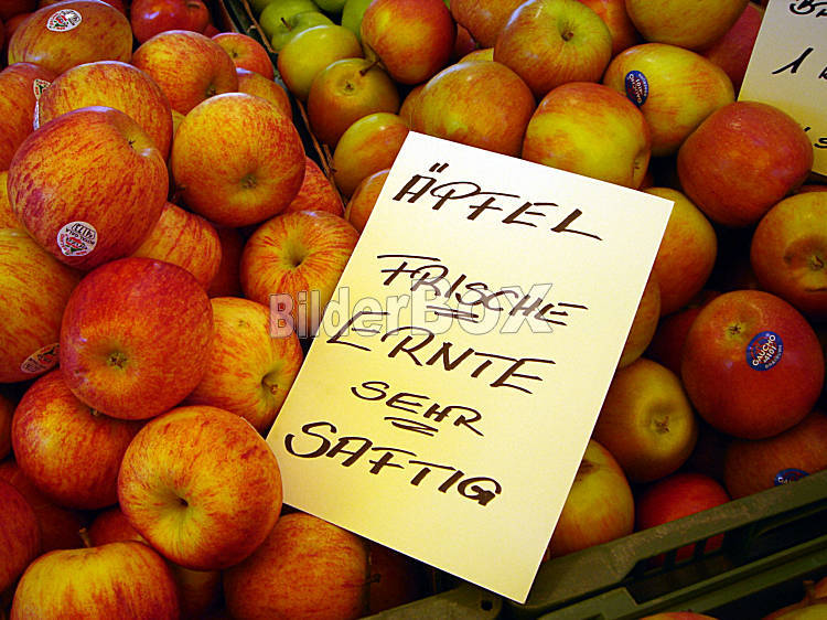Beschreibung Aepfel am Markt [ (c) www.BilderBox.com, Erwin Wodicka, Siedlerzeile 3, A-4062 Thening, Tel. + 43 676 5103678.Verwendung nur gegen HONORAR, BELEG,URHEBERVERMERK und den AGBs auf bilderbox.com](in...