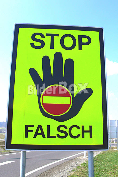 Beschreibung Falschfahrerwarnung [ (c) www.BilderBox.com, Erwin Wodicka, Siedlerzeile 3, A-4062 Thening, Tel. + 43 676 5103678.Verwendung nur gegen HONORAR, BELEG,URHEBERVERMERK und den AGBs auf...