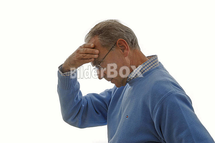 Beschreibung Mann mit Kopfschmerzen [ (c) www.BilderBox.com, Erwin Wodicka, Siedlerzeile 3, A-4062 Thening, Tel. + 43 676 5103678.Verwendung nur gegen HONORAR, BELEG,URHEBERVERMERK und den AGBs auf...