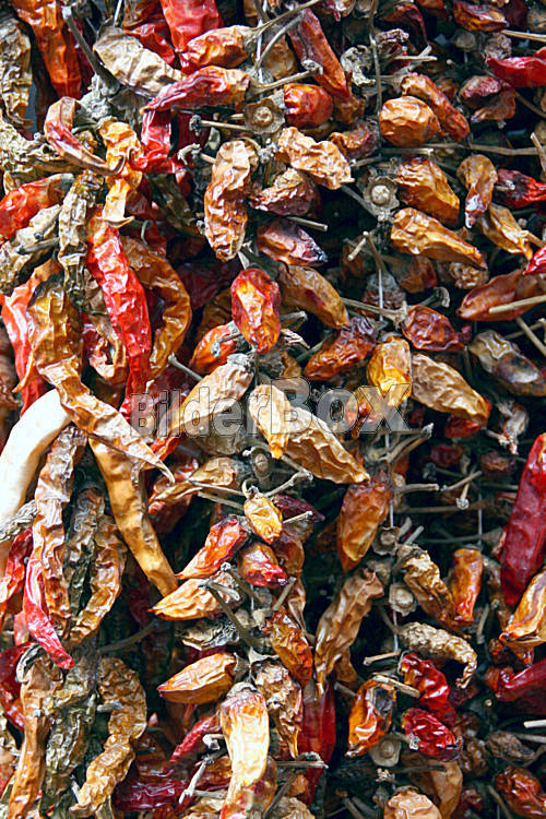 Beschreibung Getrocknete Chilischoten [ (c) www.BilderBox.com, Erwin Wodicka, Siedlerzeile 3, A-4062 Thening, Tel. + 43 676 5103678.Verwendung nur gegen HONORAR, BELEG,URHEBERVERMERK und den AGBs auf...