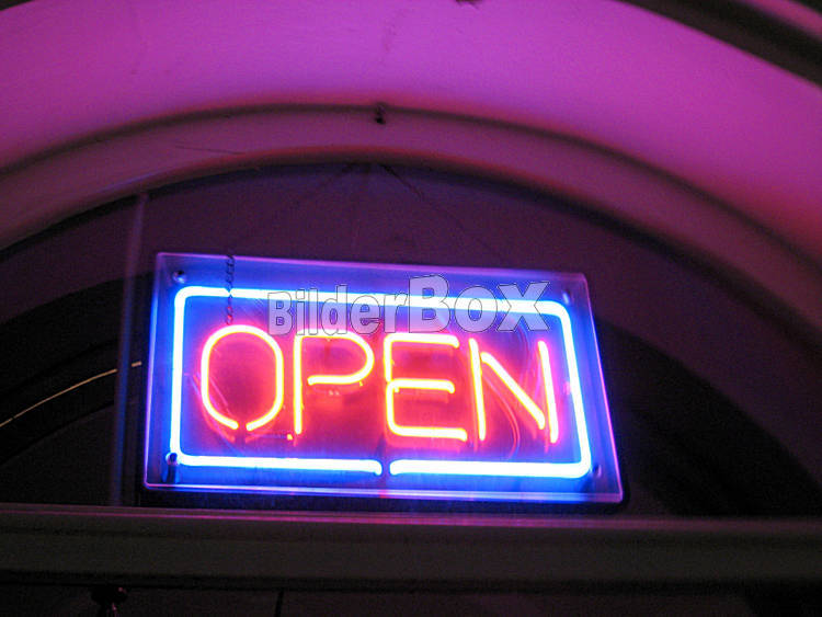Beschreibung Österreich, Salzburg, Neonschrift Open [ (c) www.BilderBox.com, Erwin Wodicka, Siedlerzeile 3, A-4062 Thening, Tel. + 43 676 5103678.Verwendung nur gegen HONORAR, BELEG, URHEBERVERMERK nach AGBs...