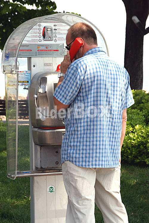 Beschreibung Mann an einer oeffentlichen Telefonzelle [ (c) www.BilderBox.com, Erwin Wodicka, Siedlerzeile 3, A-4062 Thening, Tel. + 43 676 5103678.Verwendung nur gegen HONORAR, BELEG, URHEBERVERMERK nach AGBs...