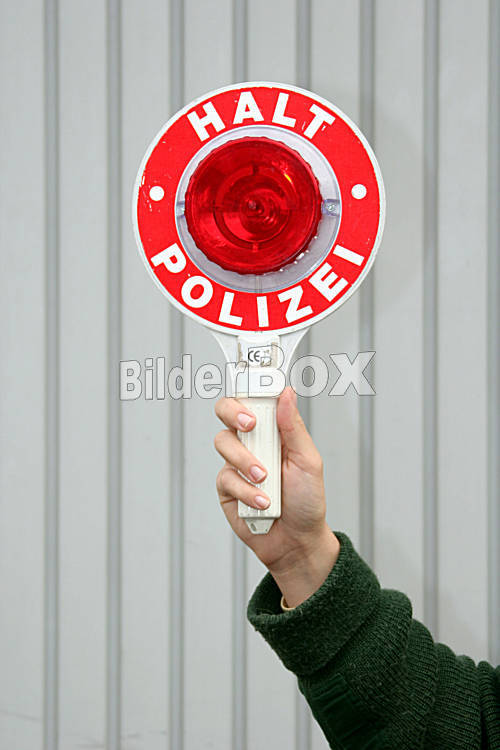 Beschreibung Polizeikelle [ (c) www.BilderBox.com, Erwin Wodicka, Siedlerzeile 3, A-4062 Thening, Tel. + 43 676 5103678.Verwendung nur gegen HONORAR, BELEG, URHEBERVERMERK nach AGBs auf bilderbox.com],...