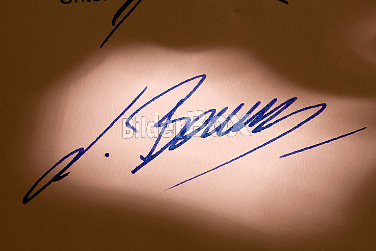 Beschreibung Unterschrift unter ein mit der Hand geschriebens Dokument oder Brief