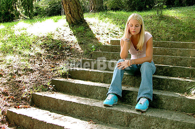 Beschreibung Nachdenkliches Maedchen auf Stufen sitzend Copyright (2002) by BilderBox.com; Erwin Wodicka, A-4062 Breitbrunn. Tel.: 0043 676 5103 678. Veroeffentlichung nur nach unseren AGBs:...