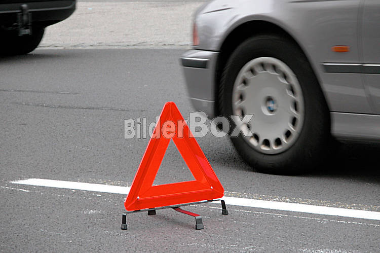 Beschreibung Aufgestelltes Pannendreieck Copyright (2002) by BilderBox.com; Erwin Wodicka, A-4062 Breitbrunn. Tel.: 0043 676 5103 678. Veroeffentlichung nur nach unseren AGBs: www.bilderbox.com/agb.html....