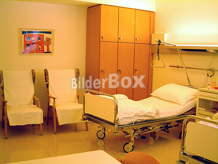 Beschreibung Leeres Krankenbett in einem Krankenhaus Copyright (2002) by BilderBox.com; Erwin Wodicka, A-4062 Breitbrunn. Tel.: 0043 676 5103 678. Veroeffentlichung nur nach unseren AGBs:...