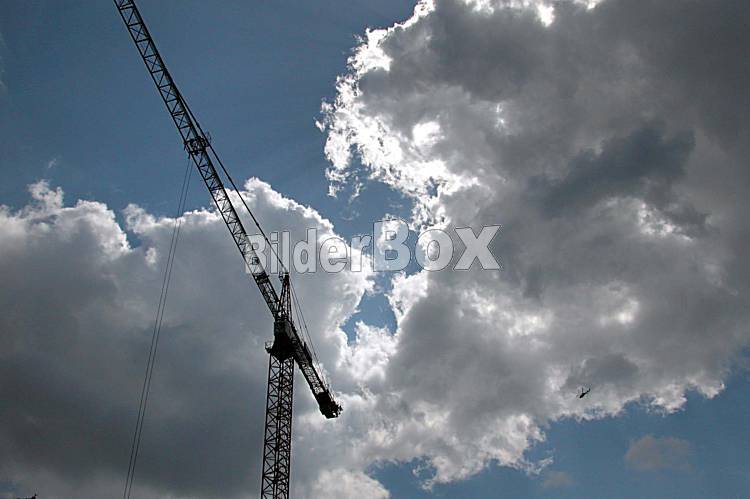 Beschreibung Baukran mit dunklen Wolken [ (c) www.BilderBox.com, Erwin Wodicka, A-4063 Breitbrunn, Tel. +43 676 5103 678. Verwendung nur gegen HONORAR, BELEG, URHEBERVERMERK und den AGBŽs auf www.bilderbox.com...