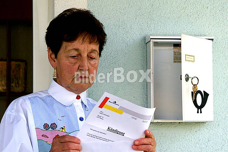 Menschen, Frau, Kündigungen, Kuendigungen, Arbeitslose, Senioren, Pensionisten, Arbeit, Blauer Briefkasten, Postkasten, Kündigen, Kuendigen, Rente,