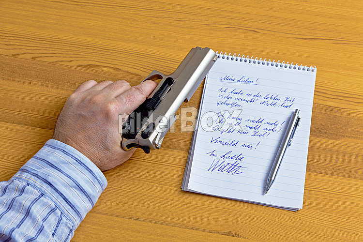 Beschreibung Ein Abschieds Brief und die Pistole eines Selbstmörders.