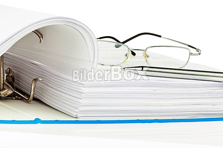 Akten Ordner mit Schriftstücken und Dokumenten