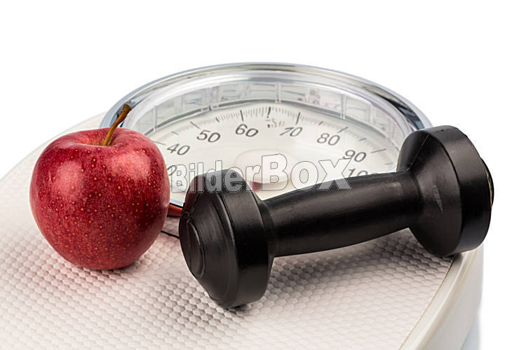 Apfel liegt auf einer Waage