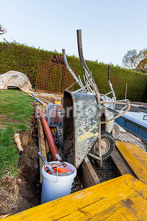 Beschreibung Handwerker haben nach der Arbeit auf der Baustelle diese zusammen geräumt. Saubere Handwerker