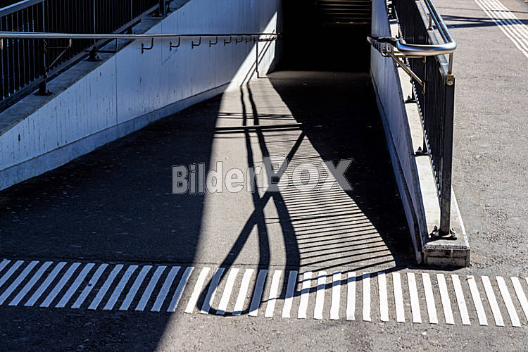 Beschreibung Schweiz, Zürich, Bahnsteig mit Unterführung, Bahnhof, Personenverkehr, Schienenverkehr