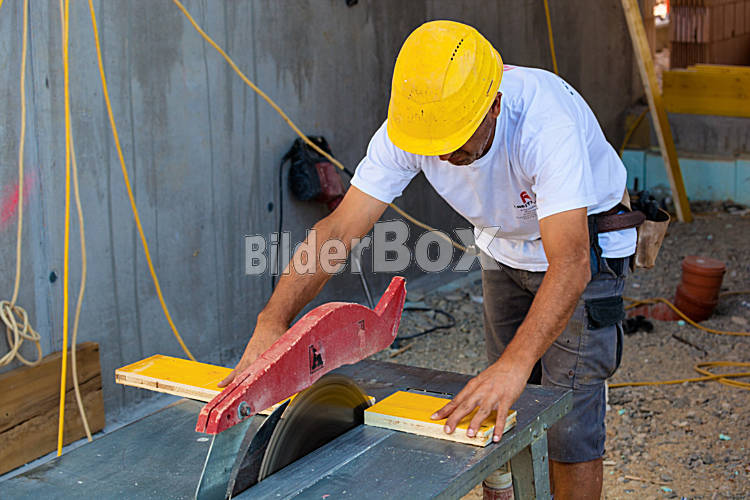 Beschreibung Bauarbeiter auf der Baustelle eines neuen Firmen und Industriegebäudes