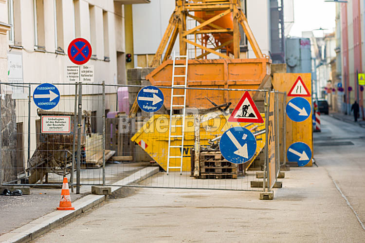 Beschreibung In einer Stadt wird ein Haus umgebaut. Baustelle im Stadtgebiet für modernen Wohnbau