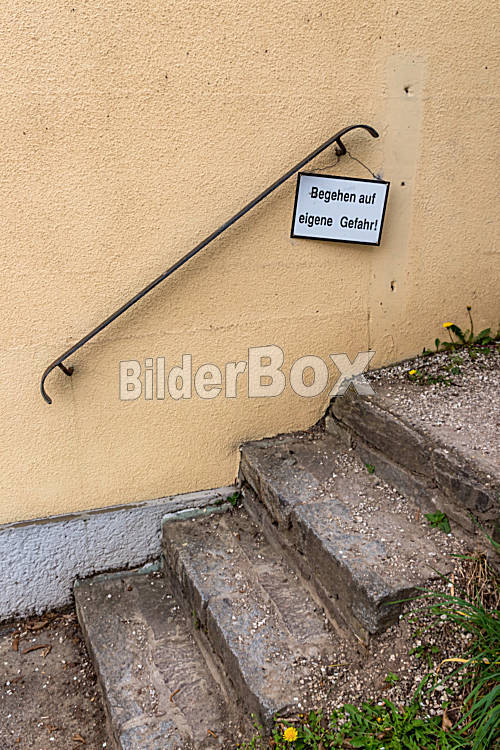 Beschreibung Ein Schild Begehn auf eigene Gefahr. Warnung vor nicht geräumten Wegen