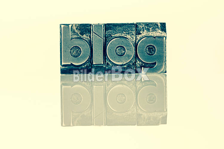 Beschreibung Das Wort Blog mit Bleibuchstaben geschrieben. Symbolfoto für bloggen