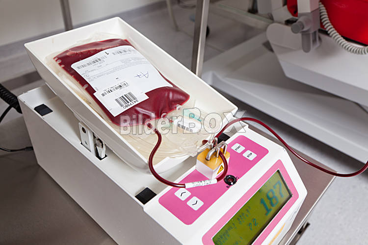 Beschreibung In einem Blutlabor wird beim Blut Spendenblut abgenommen.