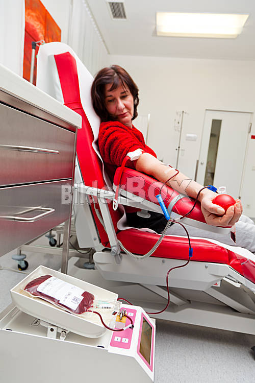 Beschreibung In einem Blutlabor wird beim Blut Spendenblut abgenommen.