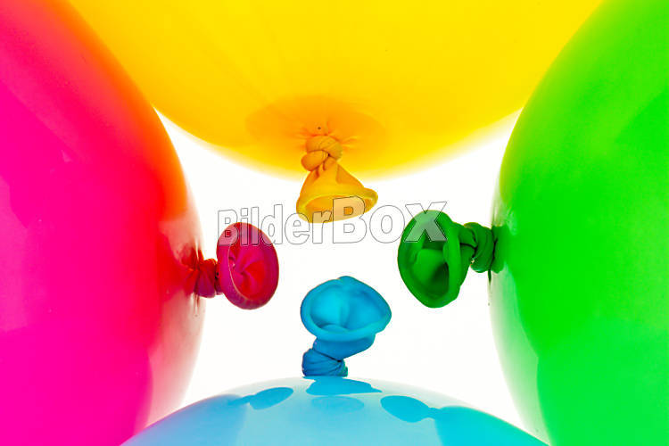 Beschreibung Verschiedene bunte Luftballons. Symbol für Leichtigkeit, Freiheit, Feiern