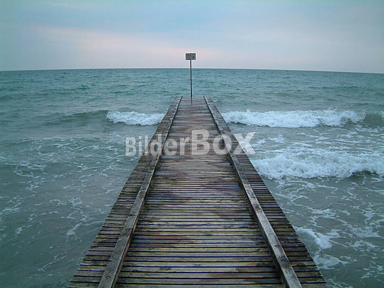 Steeg, Steg ins Meer, Meerwasser, Meeren, Adriatisches, Salzwasser, Salziges, Italienischer, Italienisches, Meerstrand, Meerstränden, Meerstraenden,... |