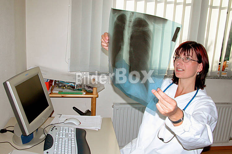 Beschreibung Aerztin mit einem Roentgenbild Copyright (2002) by BilderBox.com; Erwin Wodicka, A-4062 Breitbrunn. Tel.: 0043 676 5103 678. Veroeffentlichung nur nach unseren AGBs: www.bilderbox.com/agb.html....