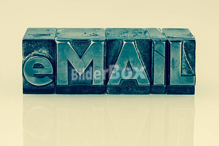 Beschreibung Das Wort " e-mail " in Bleibuchstaben geschrieben. Symbolfoto für schnellen Schriftverkehr