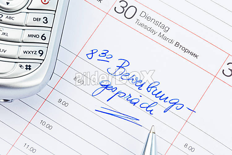 Beschreibung Ein Termin ist in einem Kalender eingetragen: Bewerbungsgespräch