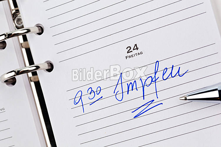 Beschreibung Ein Termin ist in einem Kalender eingetragen: Impfen
