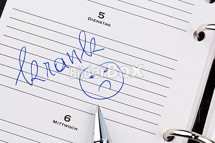 Beschreibung Ein Termin ist in einem Kalender eingetragen: Krank