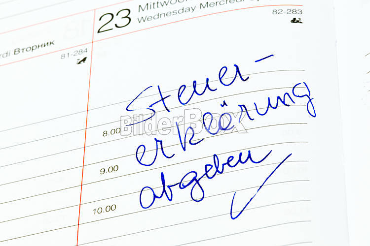 Beschreibung Ein Termin ist in einem Kalender eingetragen: Steuererklärung abgeben