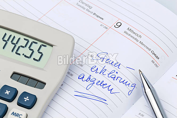 Beschreibung Ein Termin ist in einem Kalender eingetragen: Steuererklärung abgeben
