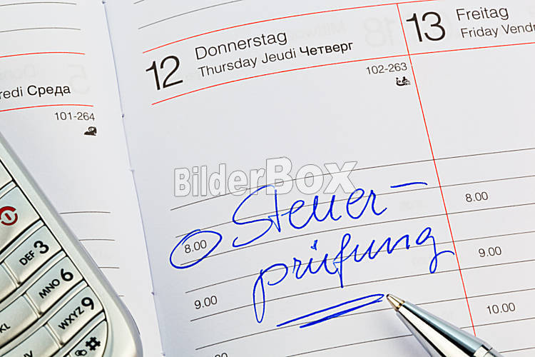 Beschreibung Ein Termin ist in einem Kalender eingetragen: Steuerprüfung