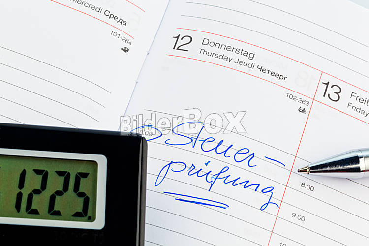 Beschreibung Ein Termin ist in einem Kalender eingetragen: Steuerprüfung