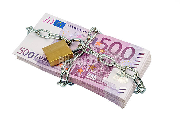 Euro-Geldscheine mit Kette und Vorhängeschloss