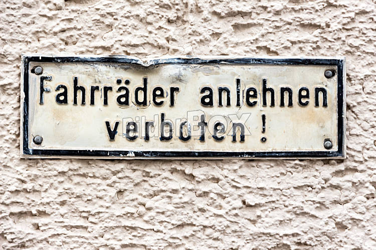 Beschreibung Schiuld an einem Wohnhaus, dass Fahrräder nichht an der Hausmauer angelehnt werden dürfen.