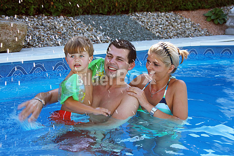 Beschreibung Familie im Pool [ (c) www.BilderBox.com, Erwin Wodicka, Siedlerzeile 3, A-4062 Thening, Tel. + 43 676 5103678.Verwendung nur gegen HONORAR, BELEG, URHEBERVERMERK nach AGBs auf bilderbox.com]